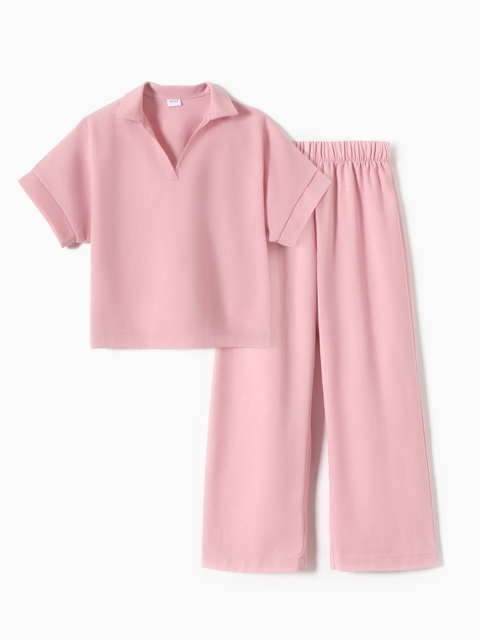 Пижама (рубашка и брюки) для девочки MINAKU, цвет бежево-розовый, рост 158 см