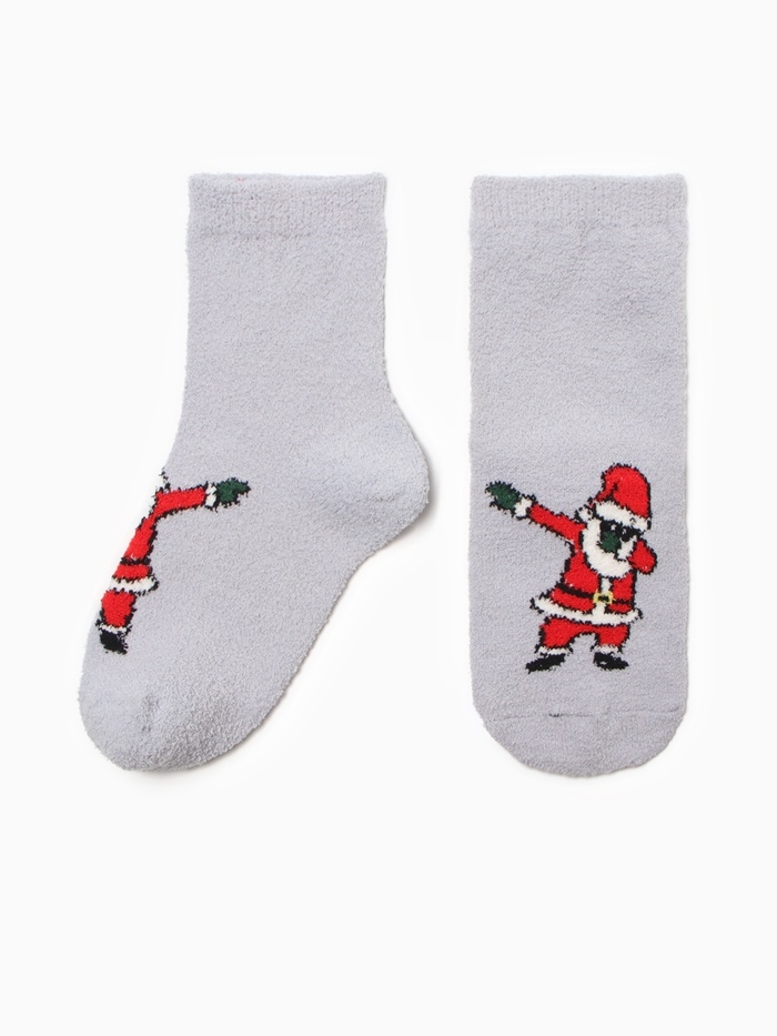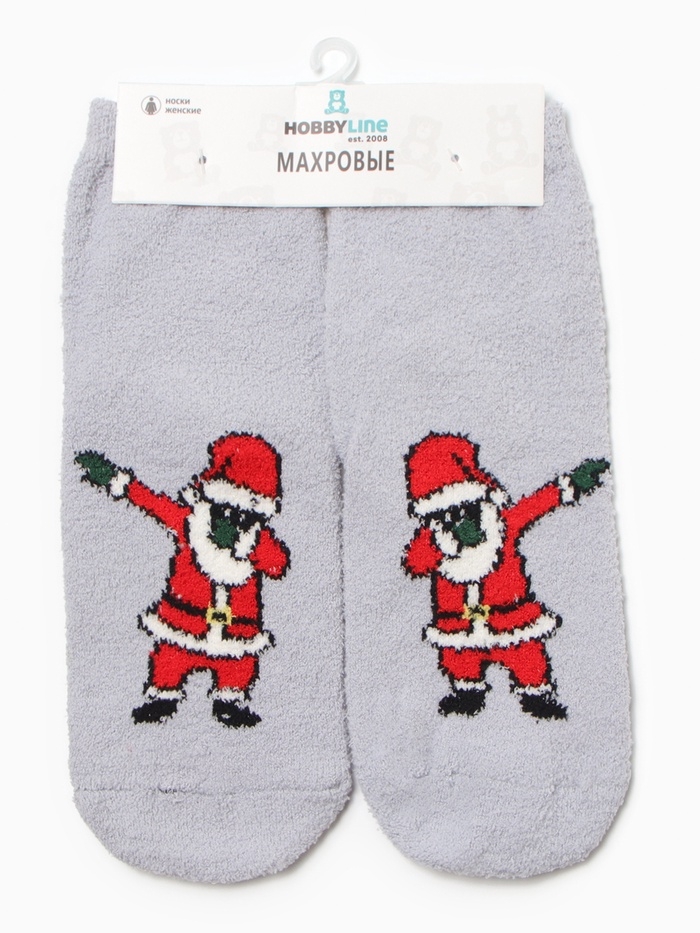 Носки женские новогодние махровые «Танцующий Дед Мороз», серые, размер 36-40