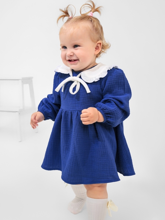 Платье с воротничком Крошка Я Муслин, 68-74, синий