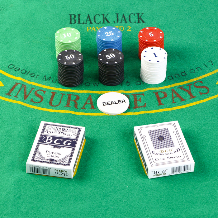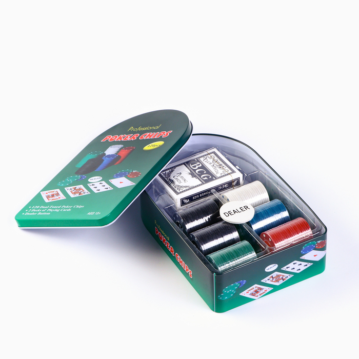 Покер, набор для игры (карты 2 колоды, фишки 120 шт.), с номиналом, 57 х 40 см