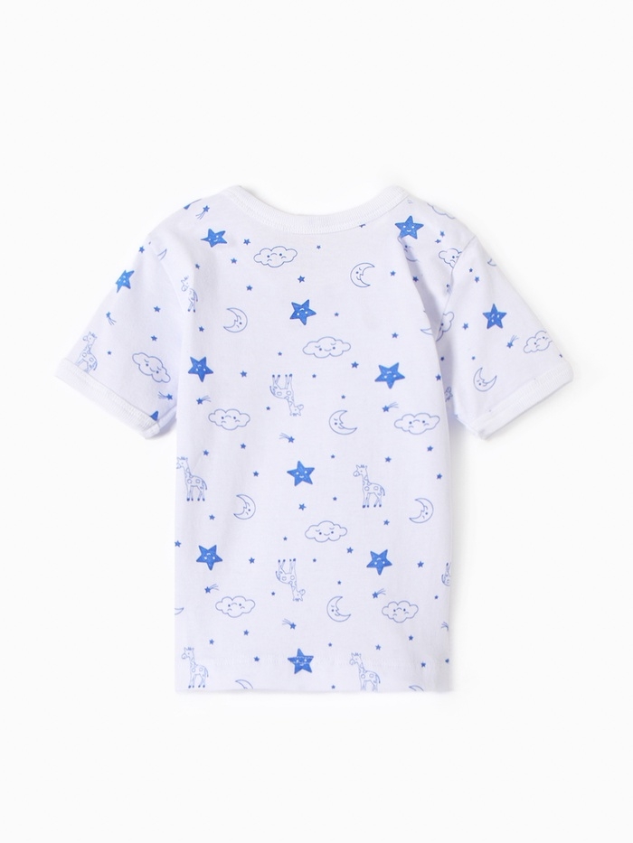 Футболка детская на кнопках "Жирафы", цвет белый/синий, рост 80