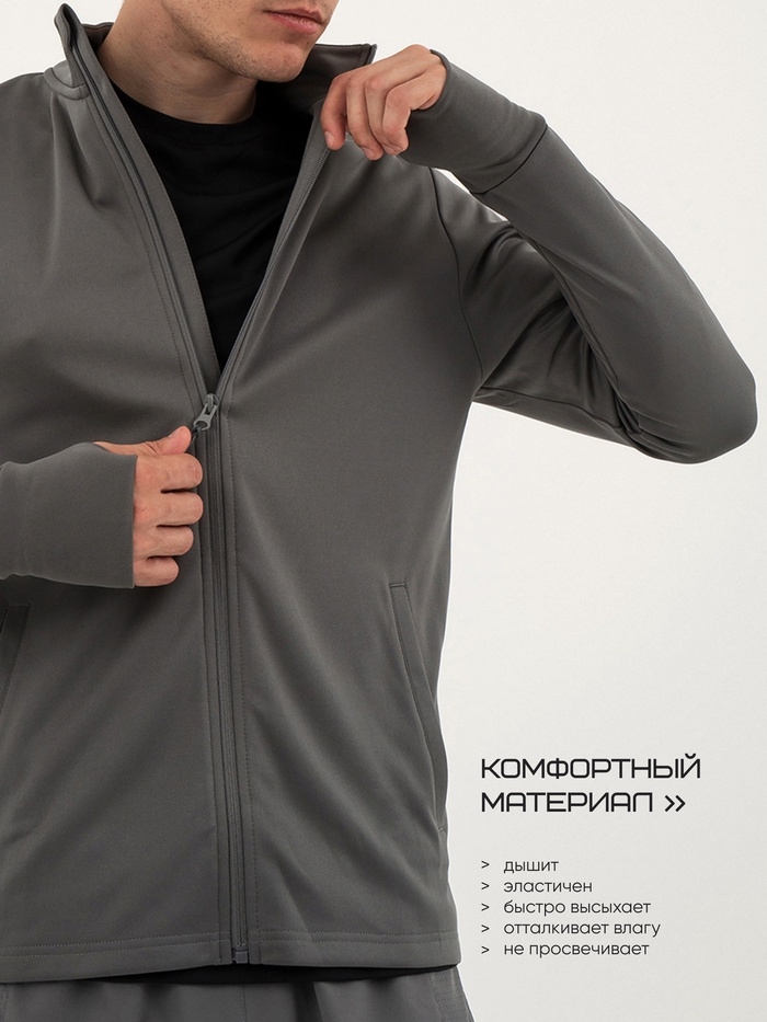 Лонгслив мужской Resport, на молнии, р. 52, цвет серый, базовый, с длинным рукавом