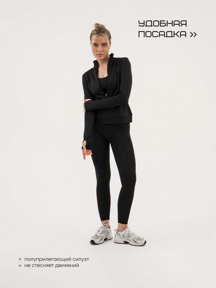 Лонгслив женский Resport, на молнии, р. 42, цвет чёрный, базовый, с длинным рукавом