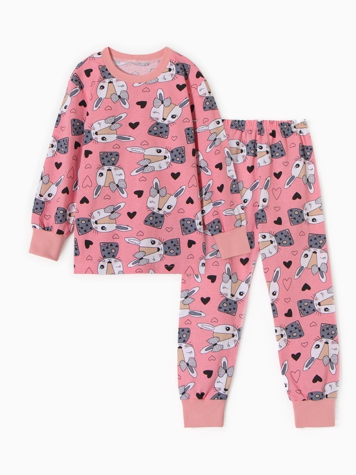Пижама для девочки "Зайки", цвет розовый, рост 104