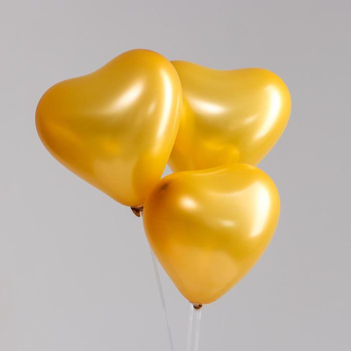 Шар латексный сердце 12", перламутровый, набор 100 шт., цвет золото