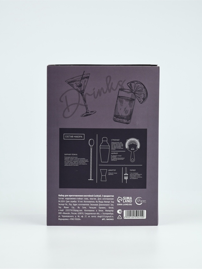 Набор для приготовления коктейлей "Cocktail", 5 предметов
