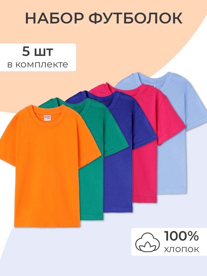 Набор детских футболок 5 шт, цвет микс, рост 128