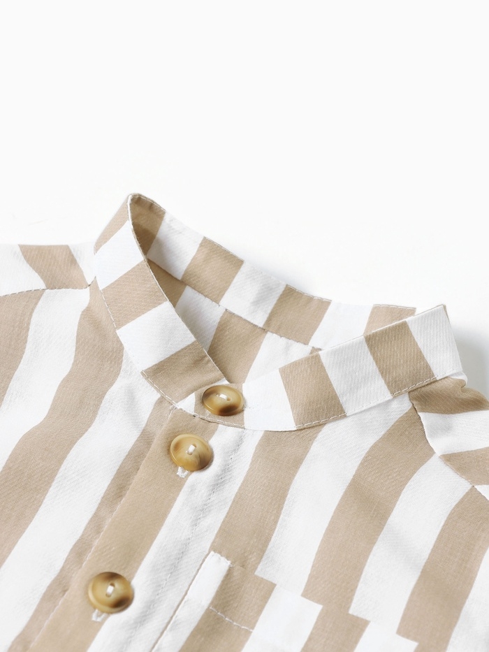 Рубашка для мальчика, MINAKU: Eco style, цвет бежевый/полоска, рост 122 см
