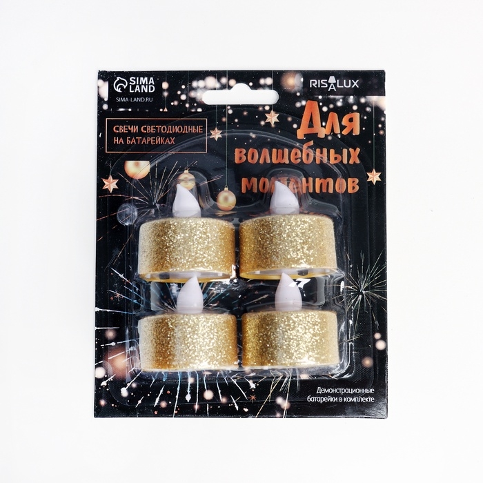Светодиодные свечи, ночники LED RISALUX «Для волшебных моментов» набор 4 шт., золото блёстки, RGB