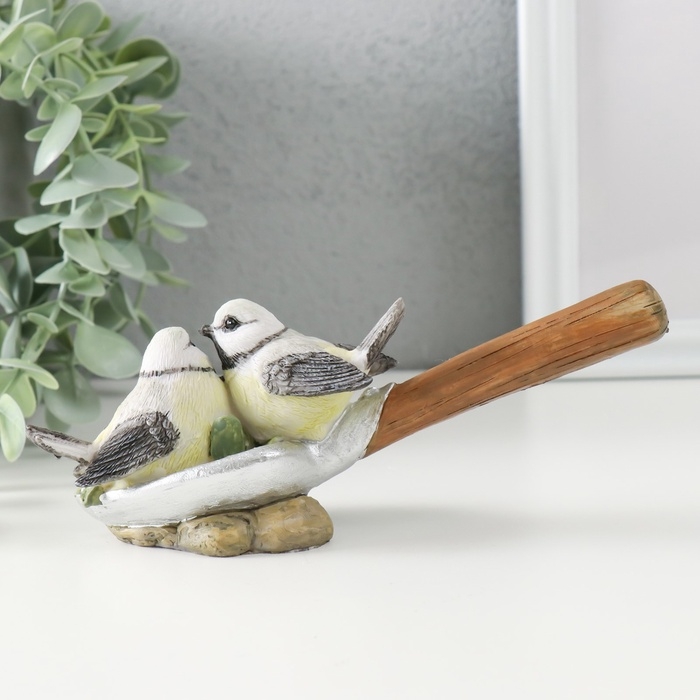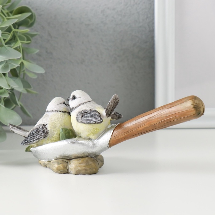 Сувенир полистоун "Синички на лопате, с цветами" 17х5,5х7 см