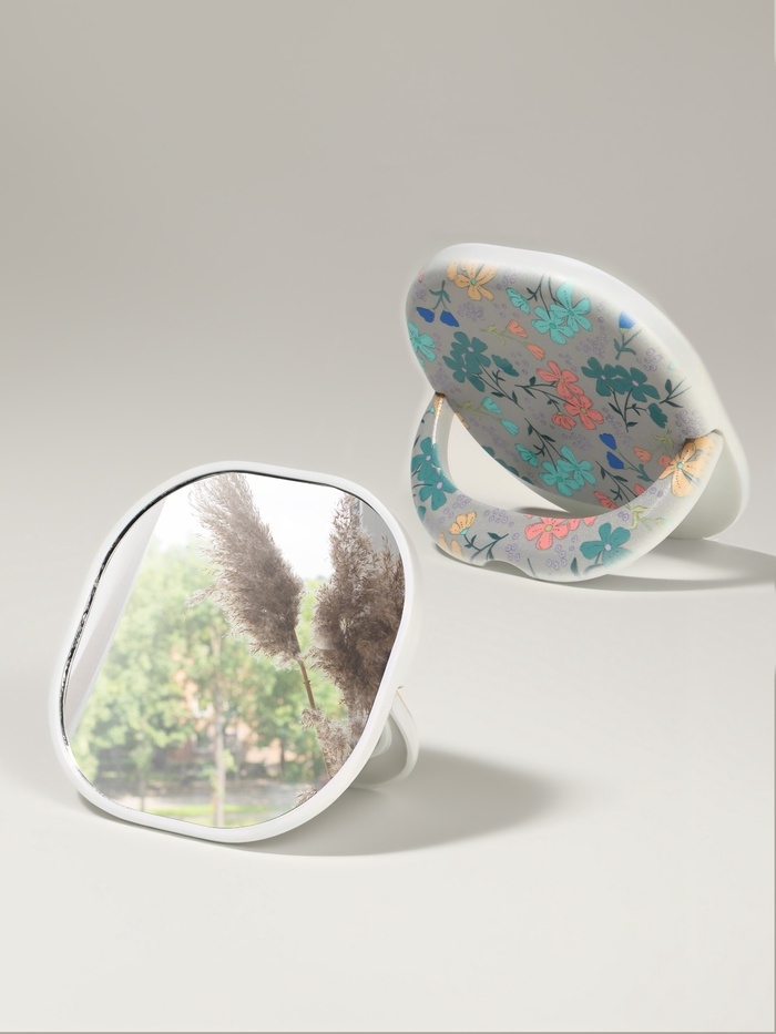 Зеркало карманное «Узор», с подставкой, 8 × 8 см, цвет белый