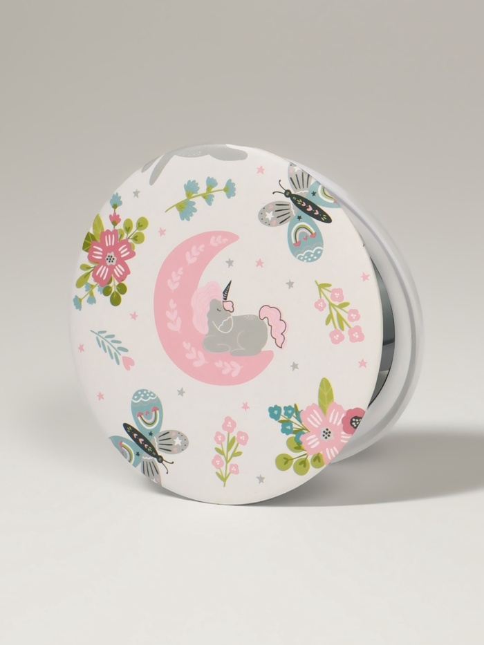 Зеркало складное «Единороги», d = 7,3 см, с увеличением, цвет белый