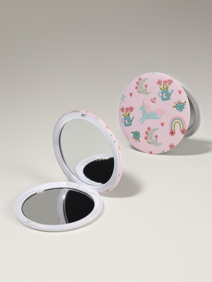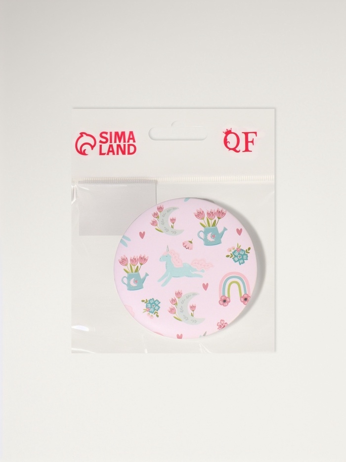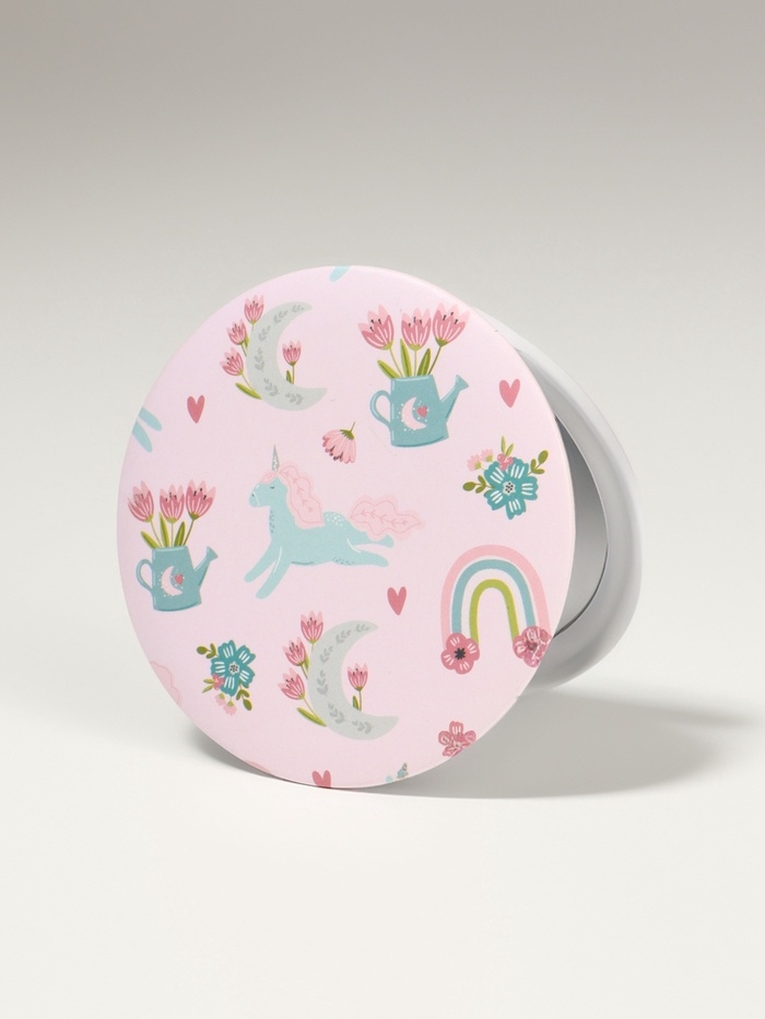 Зеркало складное «Единороги», d = 7,3 см, с увеличением, цвет розовый