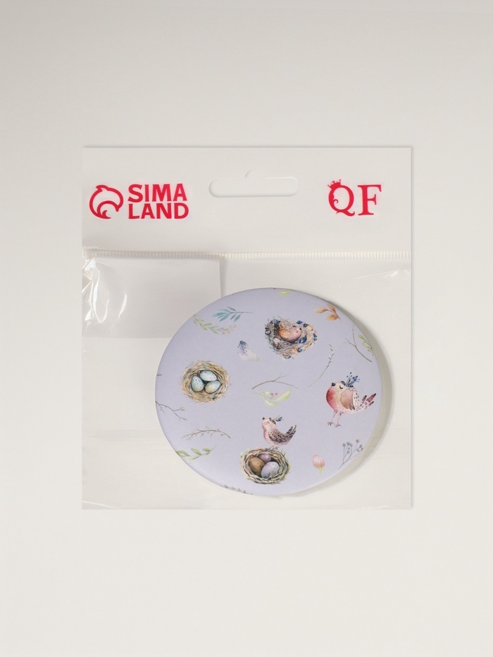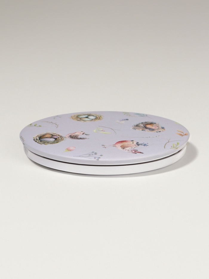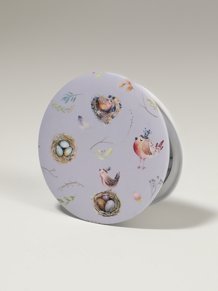 Зеркало складное «Птички», d = 7,3 см, с увеличением, цвет сиреневый