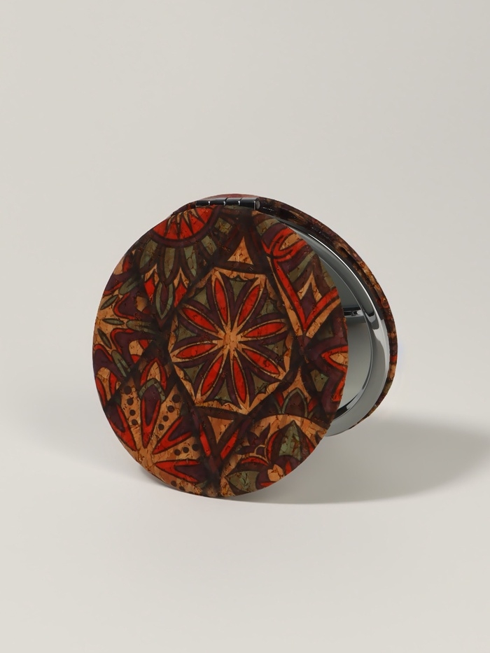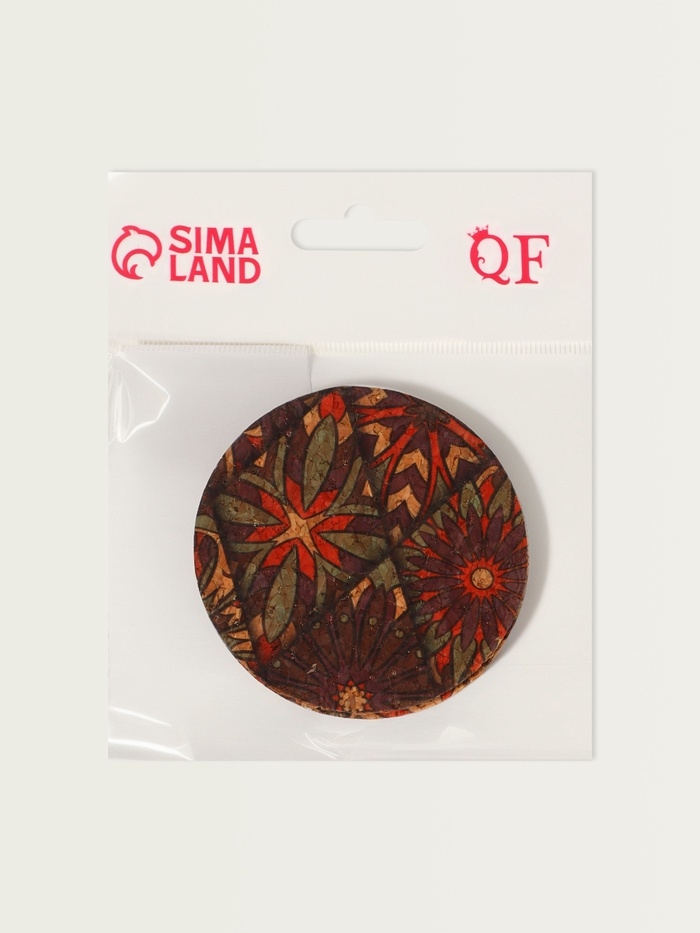 Зеркало складное «Орнамент», d = 7,2 см, с увеличением, цвет коричневый/оранжевый