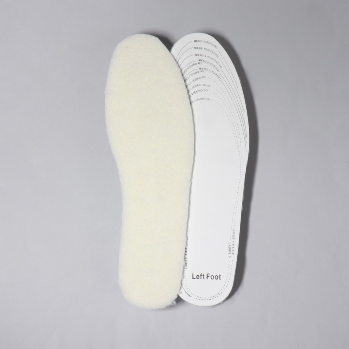 Представленный вариант стелек утеплен: благодаря такой конструкции стельки защитят Ваши ноги от холода и влаги, а верхний шерстяной слой сохранит тепло и обеспечит удобство и мягкость во время ходьбы.