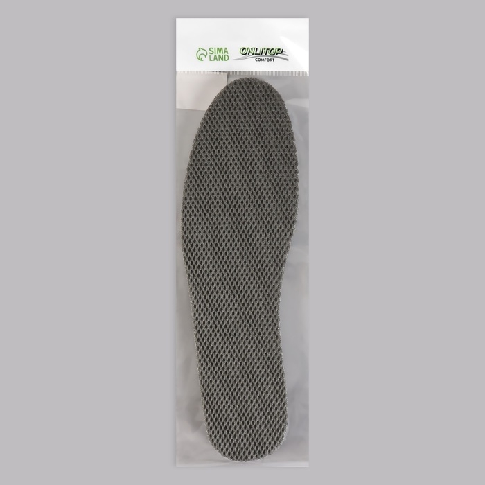 Стельки для обуви, универсальные, дышащие, р-р RU до 45 (р-р Пр-ля до 47), 28,5 см, пара, цвет серый