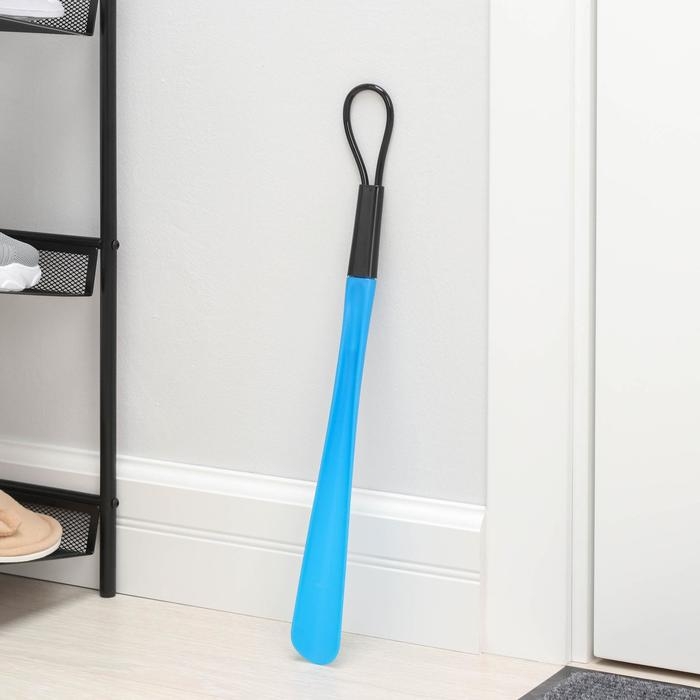 Ложка для обуви Доляна, с петелькой, 47×4,5 см, цвет голубой