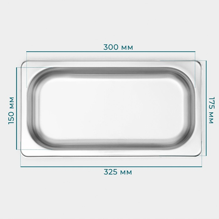 Гастроемкость 1/3 из нержавеющей стали, 40 мм, 32,7×17,6×4 см, толщина 0,8 мм