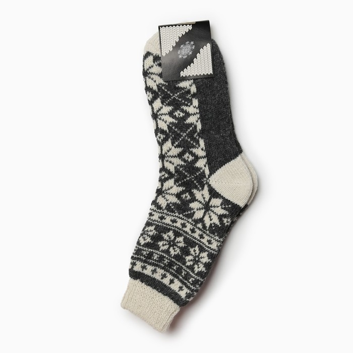 Носки женские новогодние шерстяные «Снежинка белая», цвет серый, размер 23