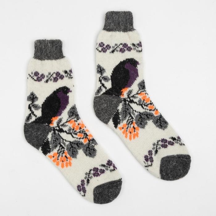 Носки женские шерстяные "Снегирь на веточке", цвет белый, размер 23