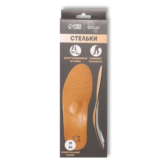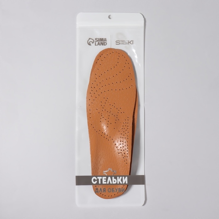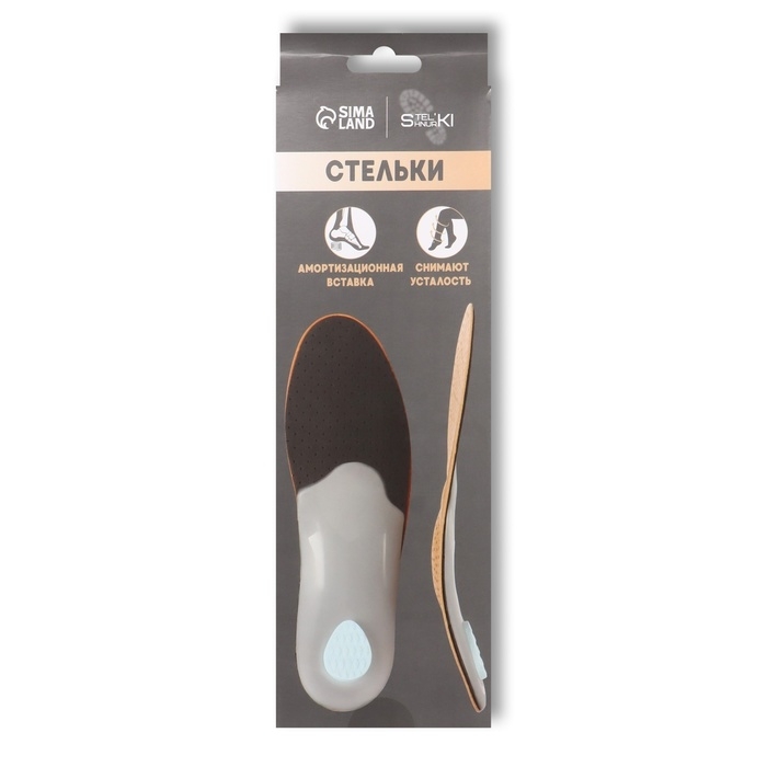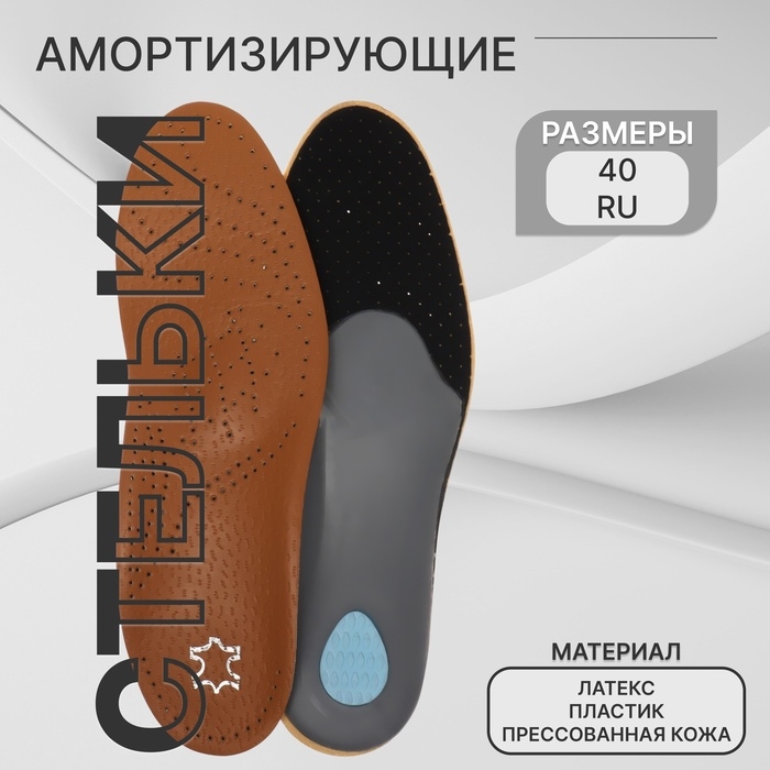 Стельки для обуви, амортизирующие, дышащие, с жёстким супинатором, р-р RU 40 (р-р Пр-ля 40), 26 см, пара, цвет коричневый