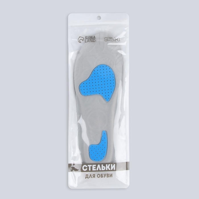 Стельки для обуви, амортизирующие, р-р RU до 44 (р-р Пр-ля до 45), 28 см, пара, цвет серый