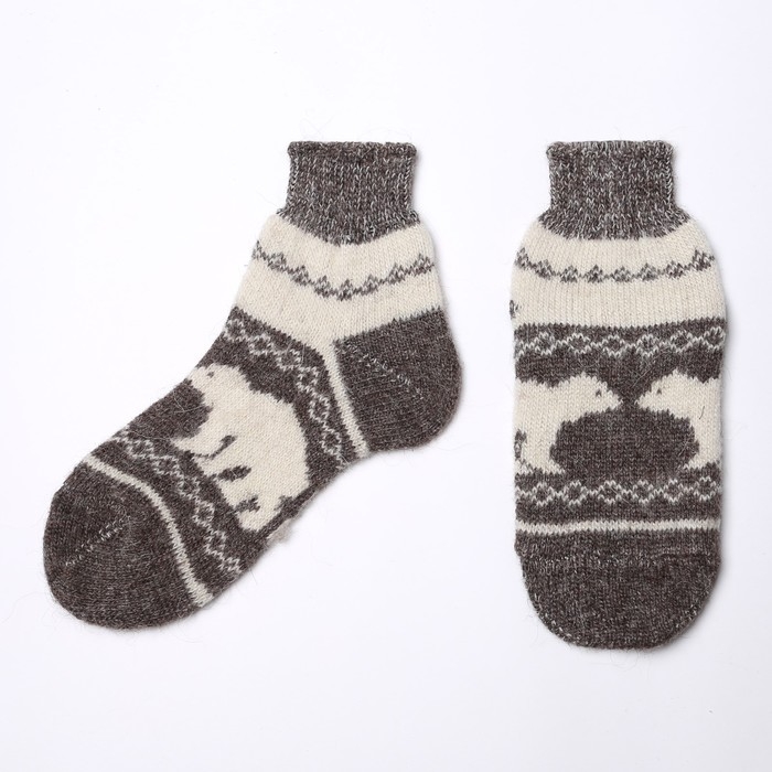 Носки женские новогодние шерстяные укороченные «Белый медведь», цвет серый, размер 23