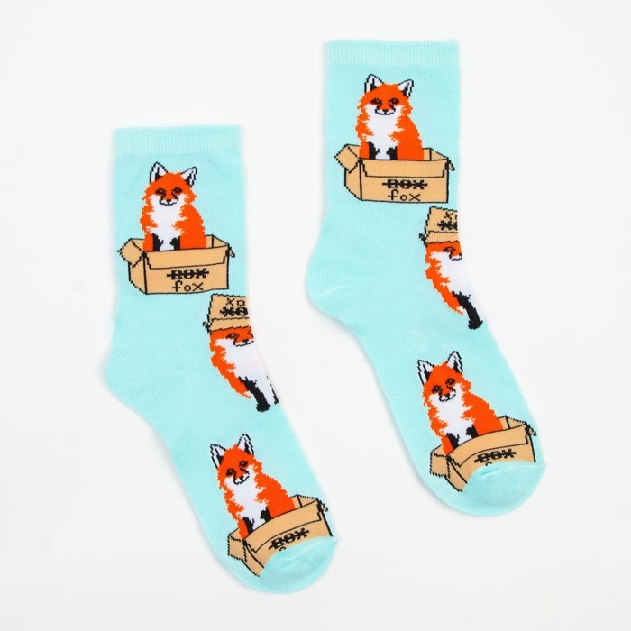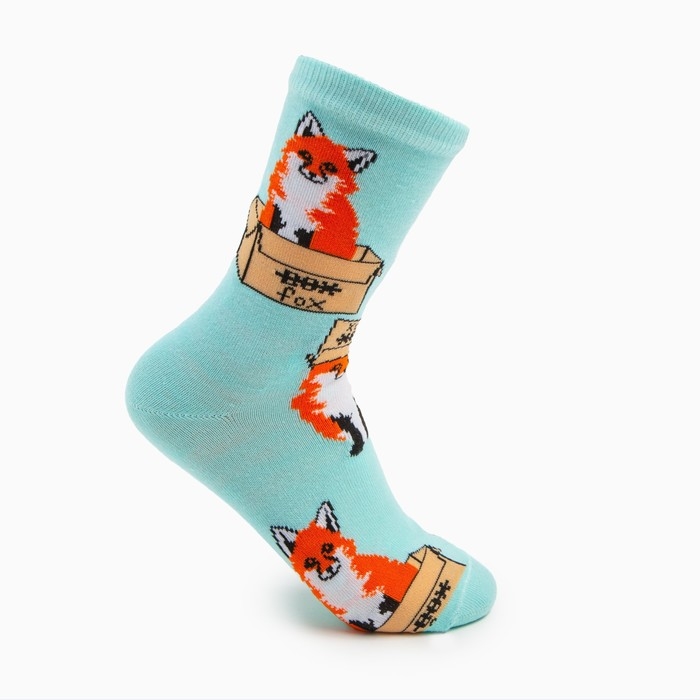 Носки женские «Лиса в коробке», цвет мятный, размер 23-25