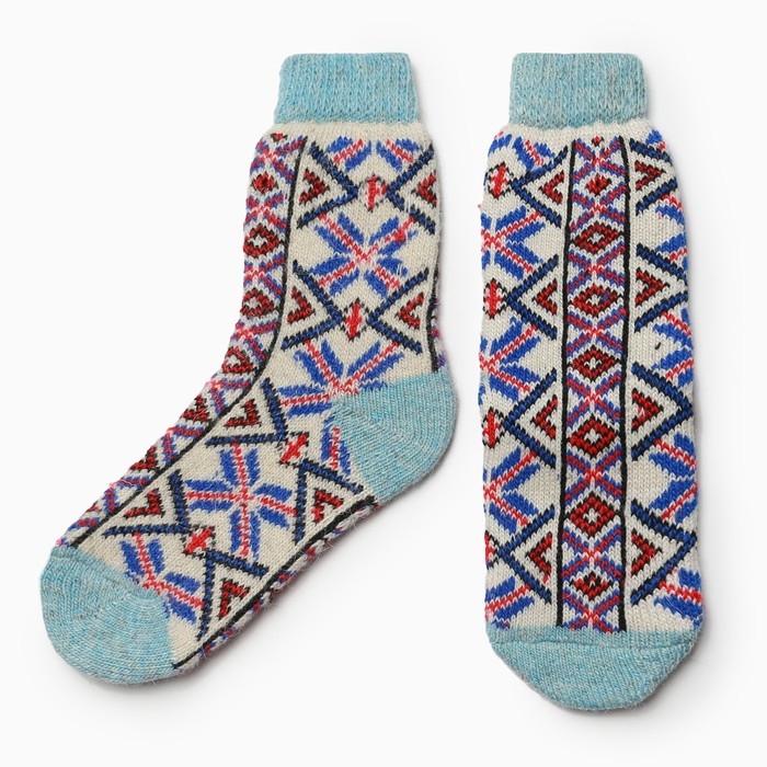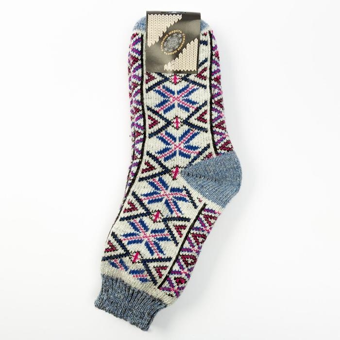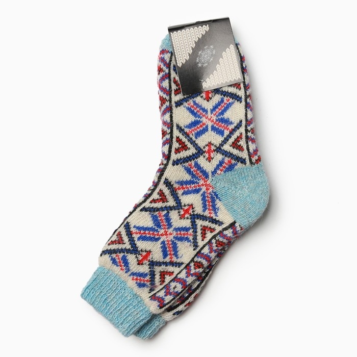 Носки женские новогодние шерстяные "Орнамент-мороз", цвет белый, размер 23