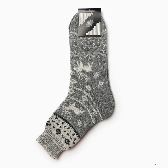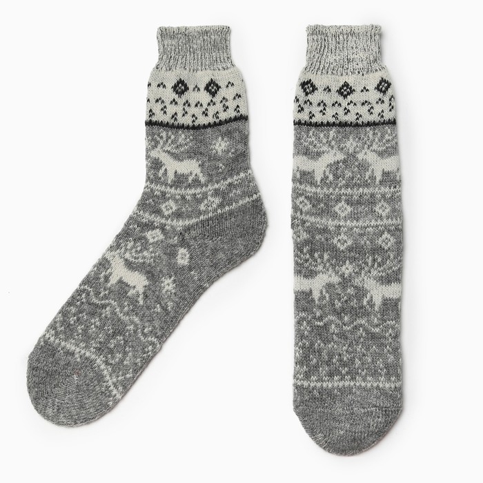 Носки новогодние мужские шерстяные "Невада-олень" цвет серый, размер 29