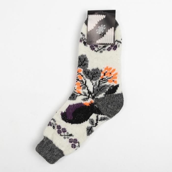Носки женские шерстяные "Снегирь на веточке", цвет белый, размер 25