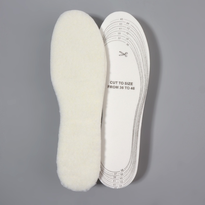 Стельки для обуви, утеплённые, универсальные, трёхслойные, р-р RU до 46 (р-р Пр-ля до 46), 29 см, пара, цвет белый