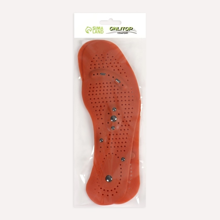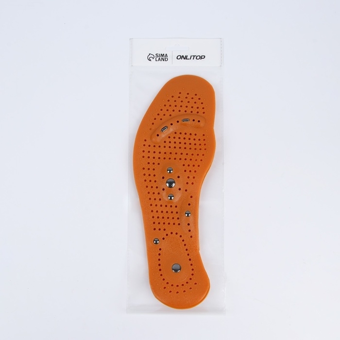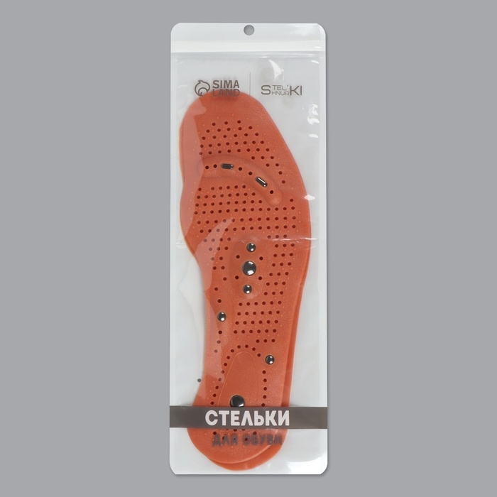 Стельки для обуви, универсальные, с магнитами, массажные, дышащие, р-р RU до 44 (р-р Пр-ля до 46), 28 см, пара, цвет коричневый