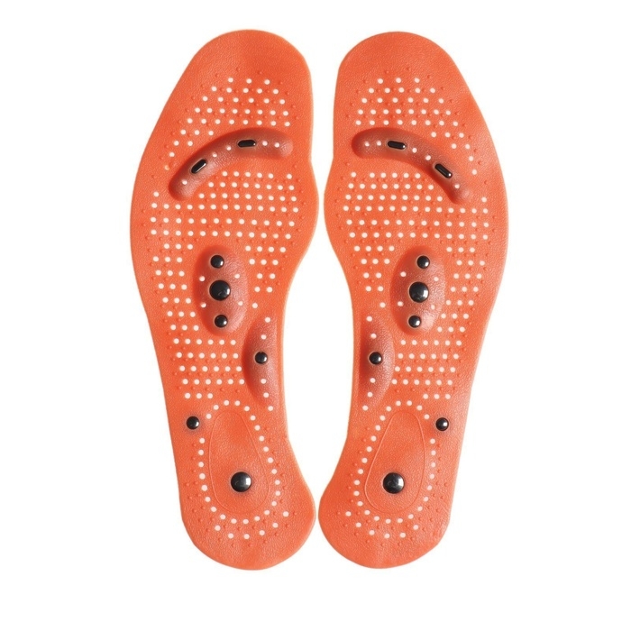 Массажная поверхность стелек с магнитами оказывает влияние на активные точки стоп, что улучшает общее самочувствие и дарит комфорт в течение дня. Изделие избавит ноги от усталости и напряжения. Благодаря дышащему эффекту стопы остаются сухими в любой обуви и при любой температуре. Размер стелек универсальный.