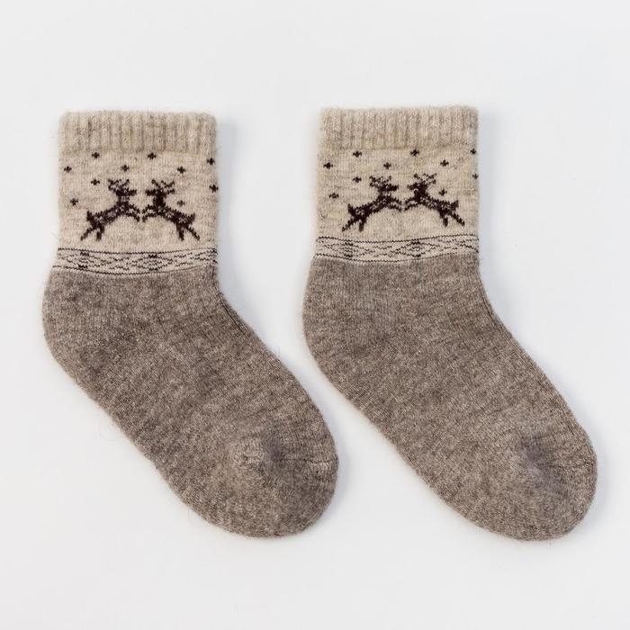 Носки детские из монгольской шерсти "Олени", цвет серый, размер 14-16 см (3)