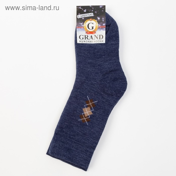 Носки мужские махровые шерстяные, цвет джинс, размер 27