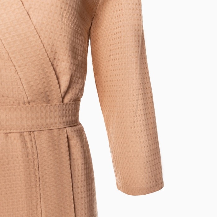 Халат вафельный женский Экономь и Я рукав 3/4, размер 50-52, бежевый, 100% хлопок, 200г/м2