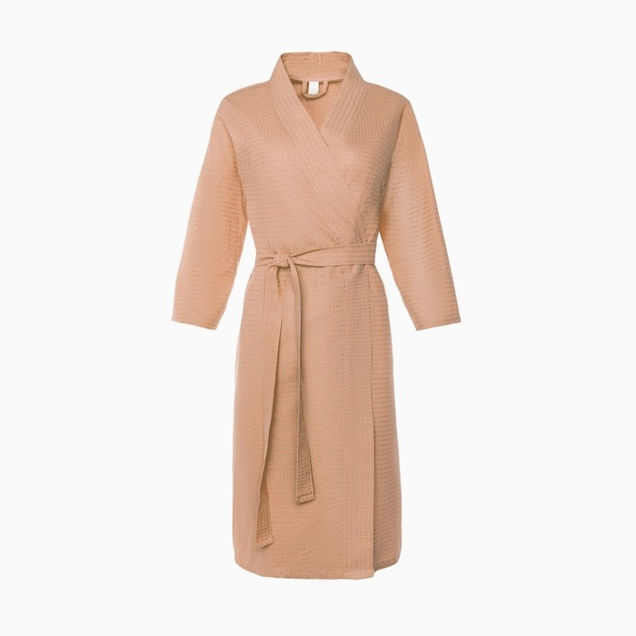 Халат вафельный женский Экономь и Я рукав 3/4, размер 54-56, бежевый, 100% хлопок, 200г/м2