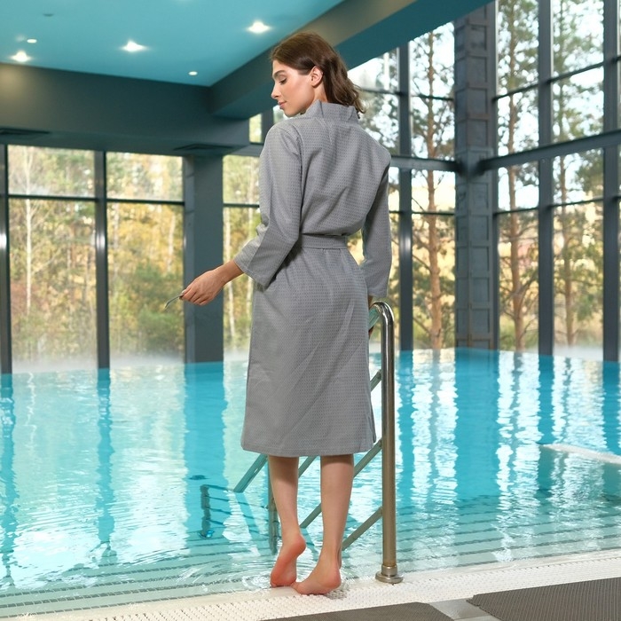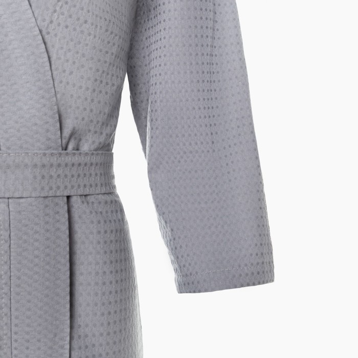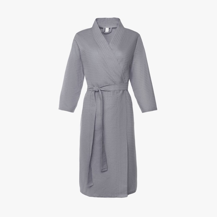Халат вафельный женский Экономь и Я рукав 3/4, размер 46-48, серый, 100% хлопок, 200г/м2