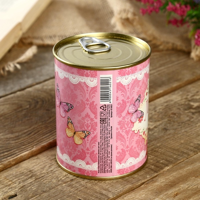 Подарочные носки в банке «Любимой маме», (внутри носки женские, цвет белый)
