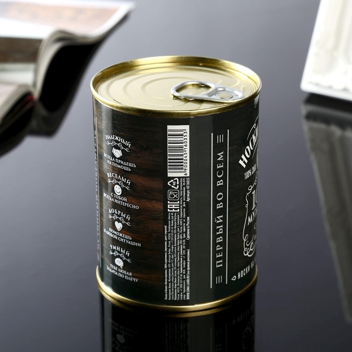 Подарочные носки в банке «Мужика. 100% мужчина», (внутри носки мужские, цвет чёрный)