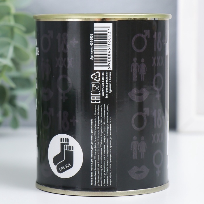 Подарочные носки в банке «Чистые для грязных дел», (внутри носки мужские, цвет чёрный)