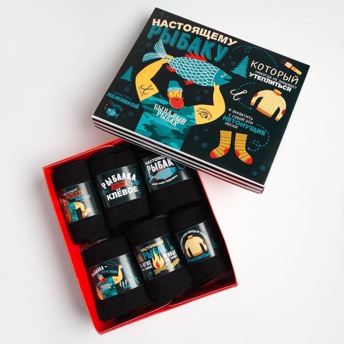 Набор мужских носков KAFTAN "Настоящему рыбаку" 6 пар, р-р 41-44 (26-29 см)