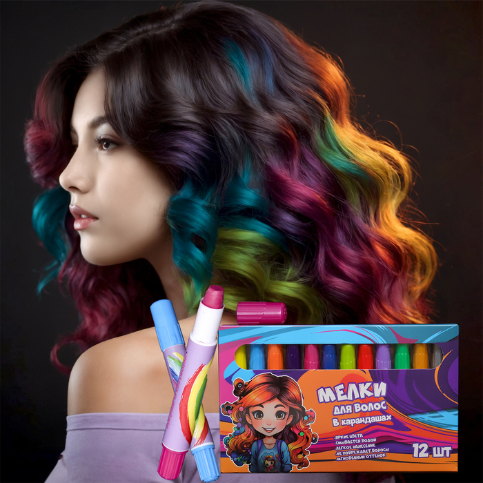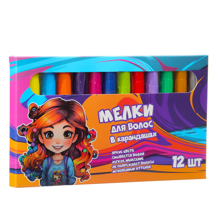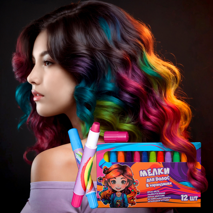 Набор мелков-карандашей для волос, 12 шт.