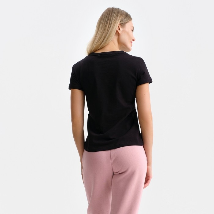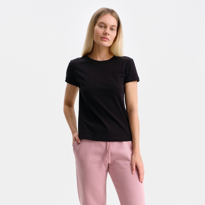 Футболка женская с круглым воротом, цвет чёрный, размер 44