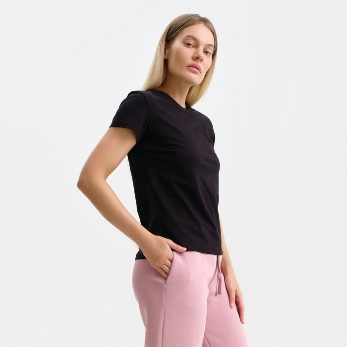 Футболка женская с круглым воротом, цвет чёрный, размер 52