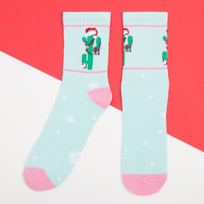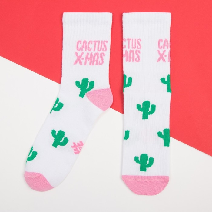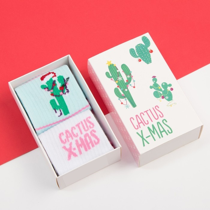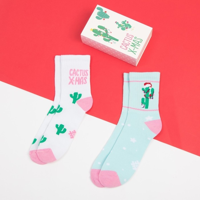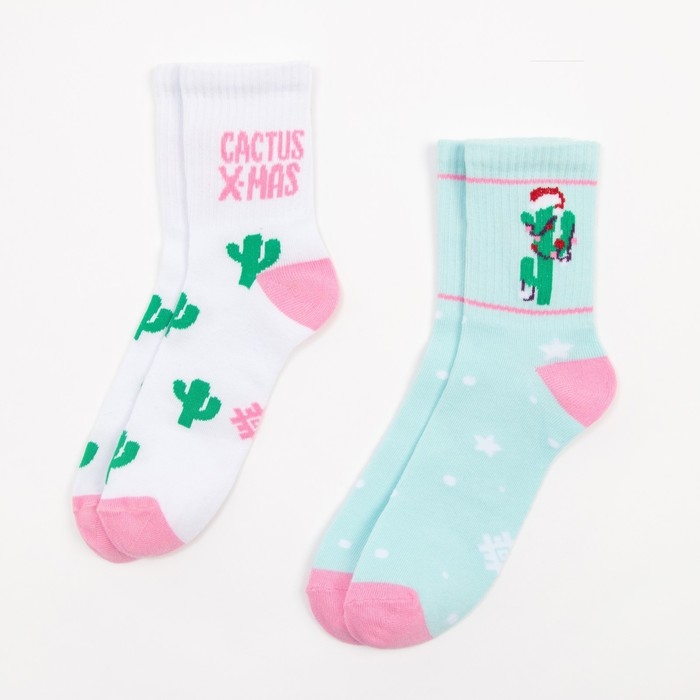 Набор новогодних женских носков "Кактусы" размер 36-40 (23-25 см), 2 пары