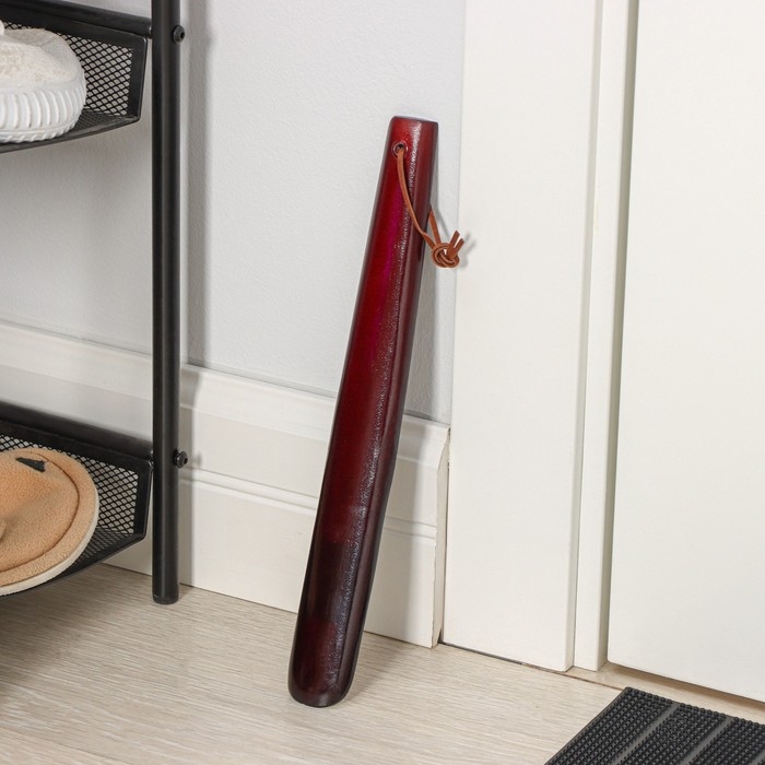 Ложка для обуви деревянная, с петелькой, 30×4 см, коричневая