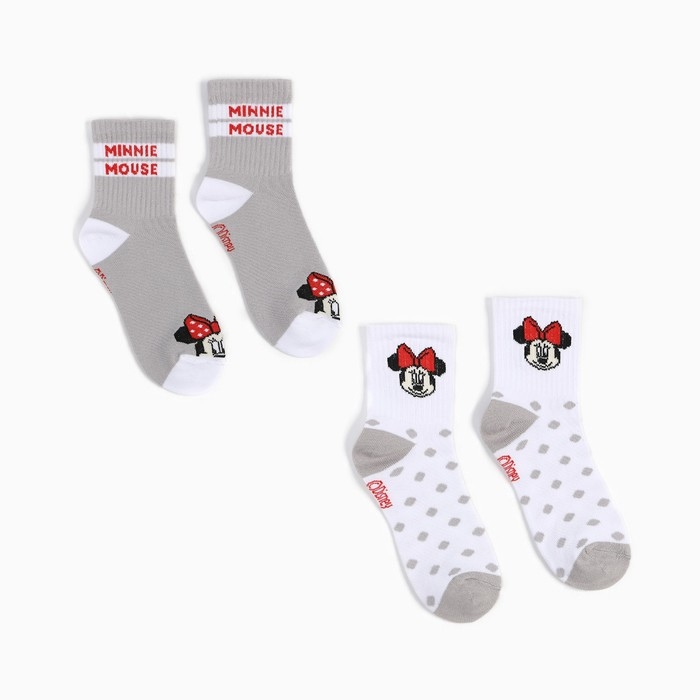 Набор носков "Minnie", Минни Маус, цвет серый/белый, 14-16 см